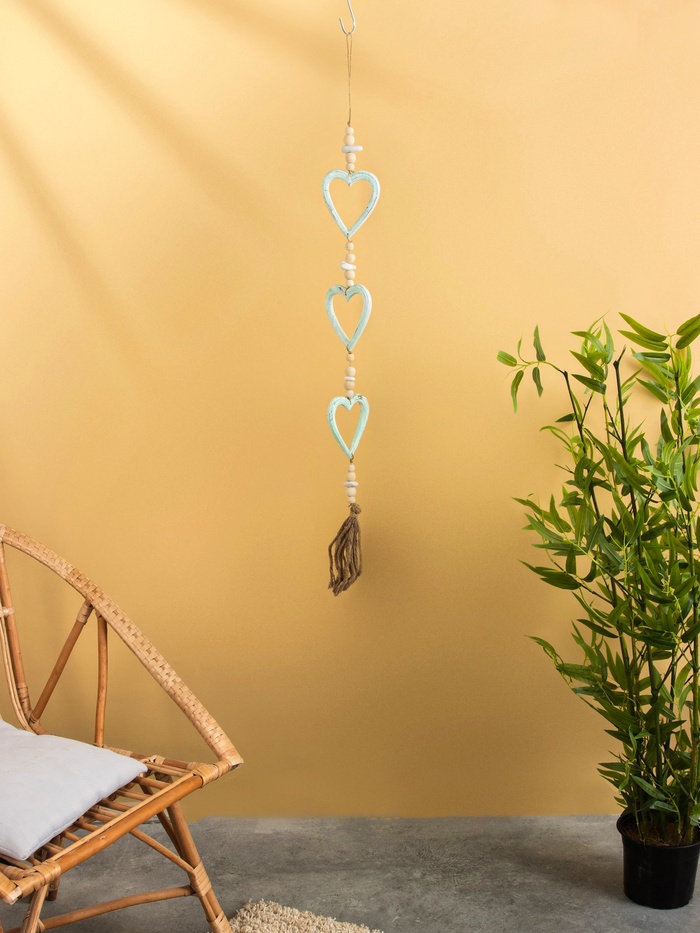 Подвеска декоративная "Сердечки" дерево, камень 13х3х100 см — Характеристики