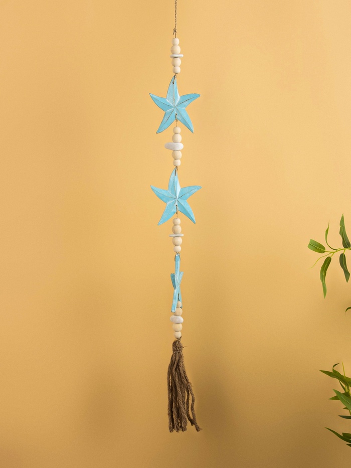 Подвеска декоративная «Звёздочки», 13×2×100 см, дерево, камень, голубая — Характеристики