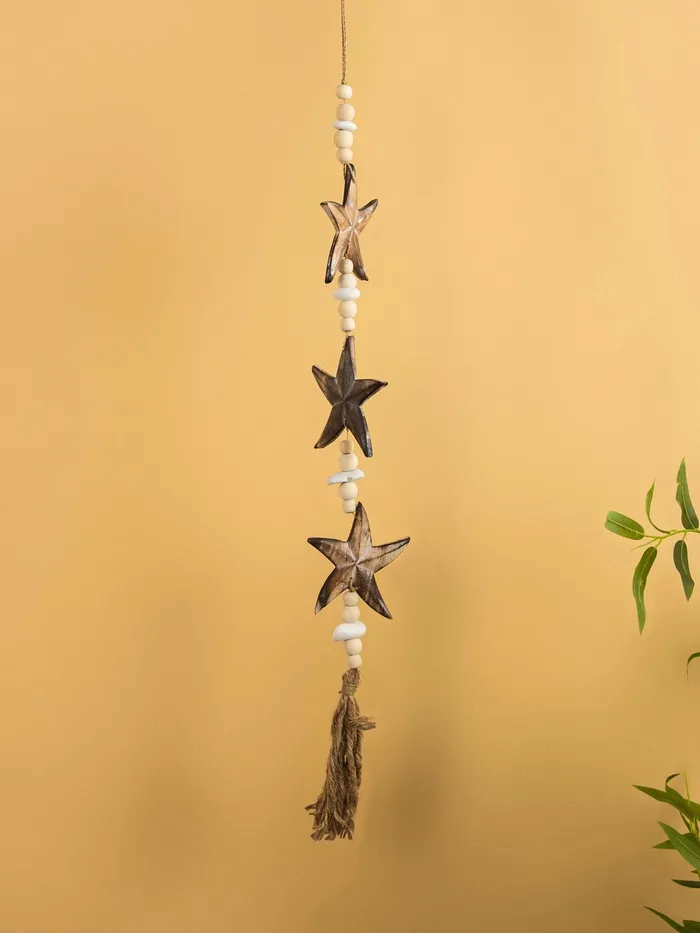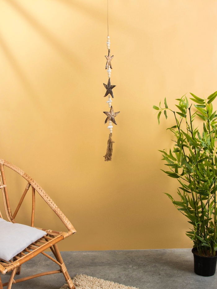 Подвеска декоративная «Звёздочки», 13×3×100 см, дерево, камень, коричневая — Характеристики