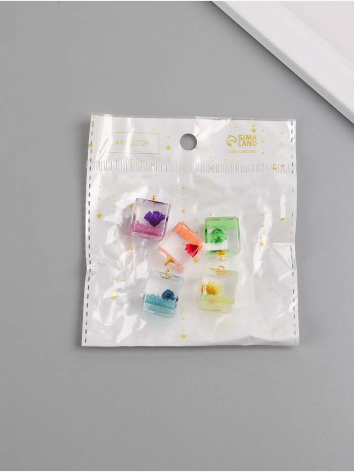 Подвеска для творчества акрил «Цветок в кубе», светится в темноте, 1.6×1.6×1.8 см, МИКС — Характеристики