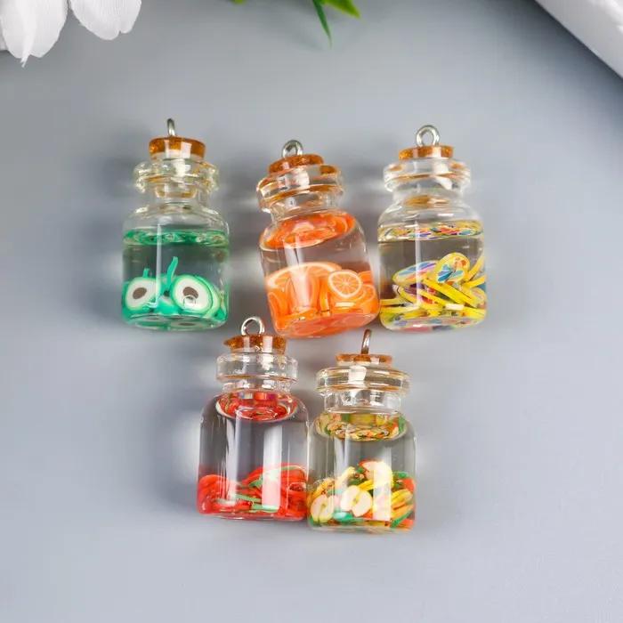 Подвеска для творчества стекло, пластик «Фрукты в колбе», 2.8×1.5 см, МИКС — Характеристики