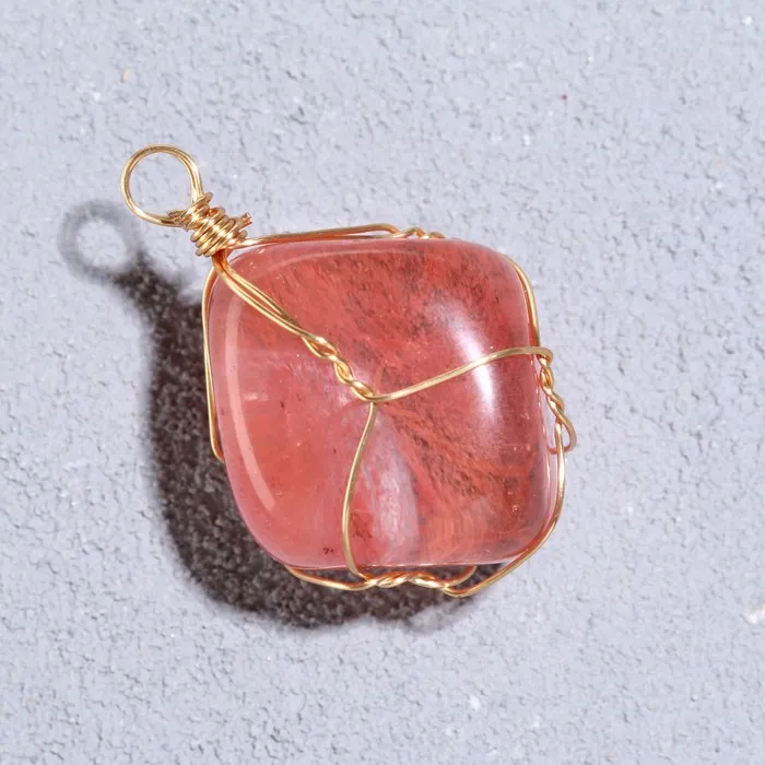 Изящный кулон с прессованным розовым агатом в золотистой проволочной оправе станет лаконичным акцентом в вашем образе. Нежный оттенок камня придаёт украшению мягкость и естественность, делая его подходящим для разных случаев.