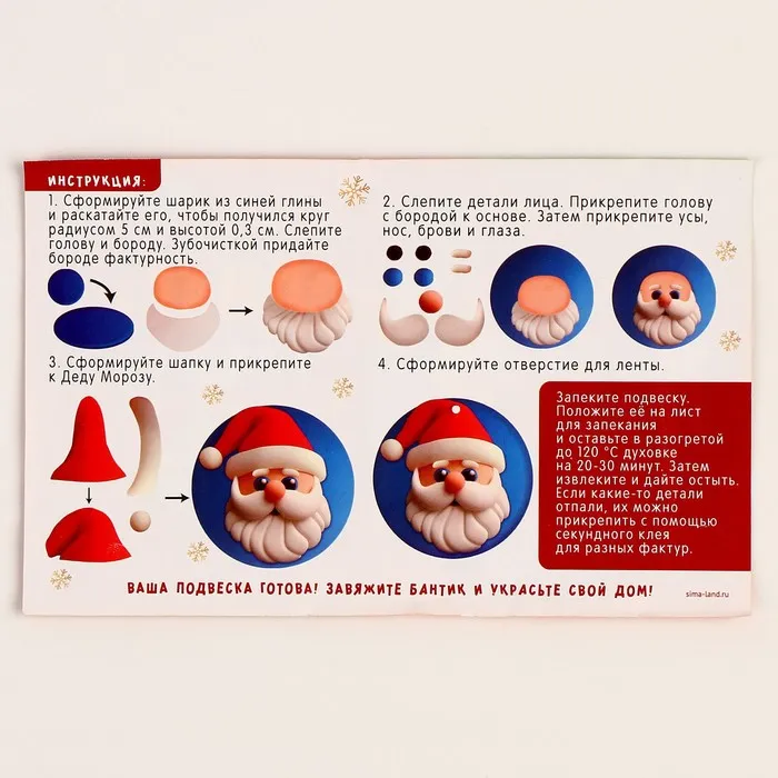 Подвеска из полимерной глины своими руками на новый год «Дед Мороз», набор для творчества — Характеристики