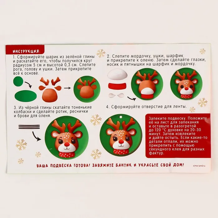 Подвеска из полимерной глины своими руками на новый год «Маленький олень», набор для творчества — Характеристики
