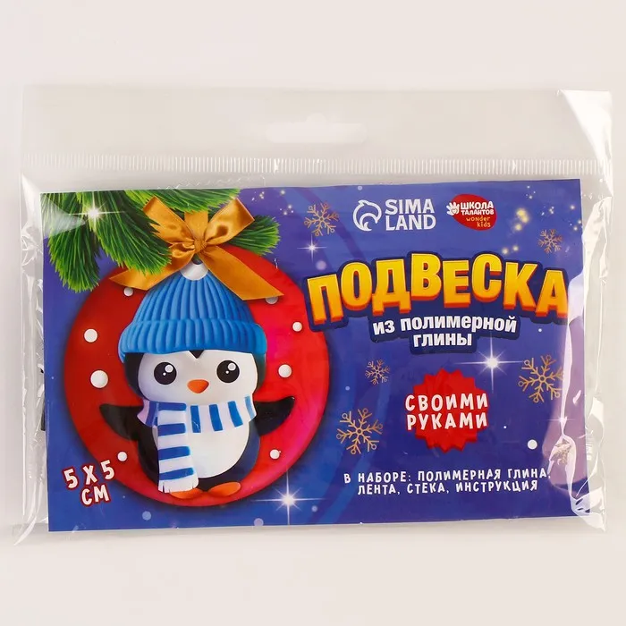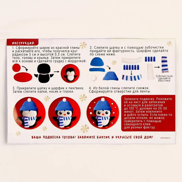 Подвеска из полимерной глины своими руками на новый год «Пингвин в шапочке», набор для творчества — Характеристики