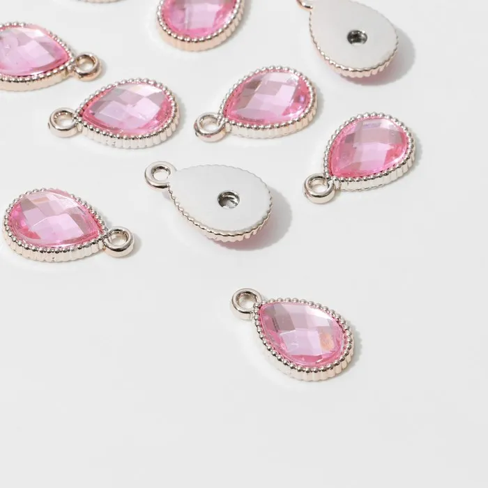 Подвеска «Капля» рифлёная 2,1×1,4×0,4 см,(набор 10 шт.), цвет розовый в золоте