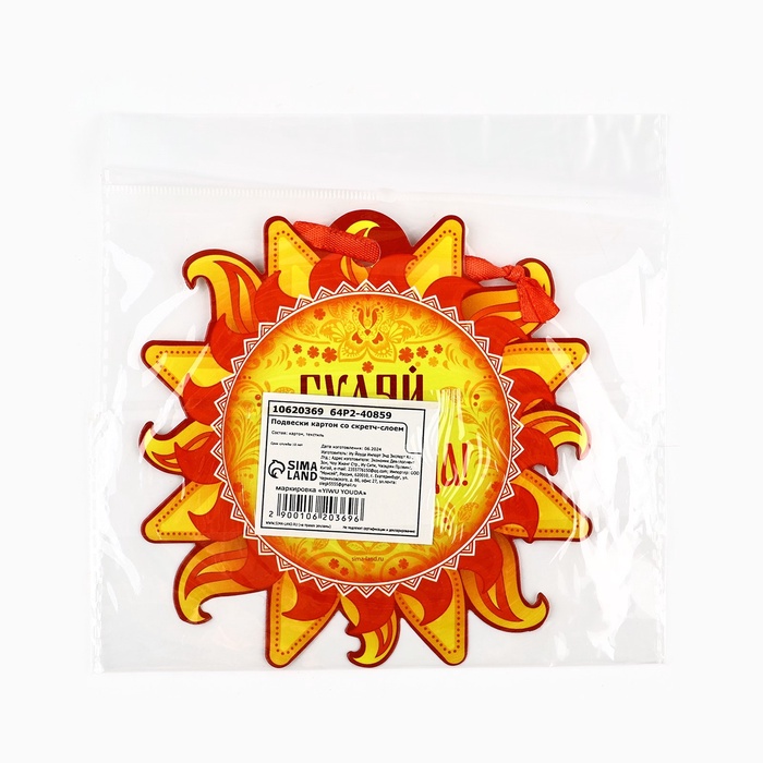 Картонная подвеска с Солнышком со скретч-слоем размером 13 х 13 см — это яркий и красочный элемент декора, который станет отличным подарком или сувениром на праздник Масленицы.