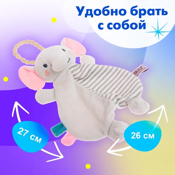 Игрушка-комфортер «Слонёнок» станет отличным подарком на любой случай: для новорождённого, на крестины, день рождения или просто чтобы порадовать малыша.