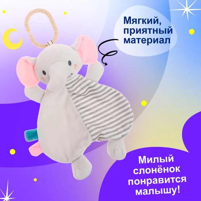 Игрушка-комфортер «Слонёнок» — это нежный и уютный спутник для малыша. Мягкий плюшевый слоник станет верным другом, который поможет ребёнку чувствовать себя спокойно и защищённо.