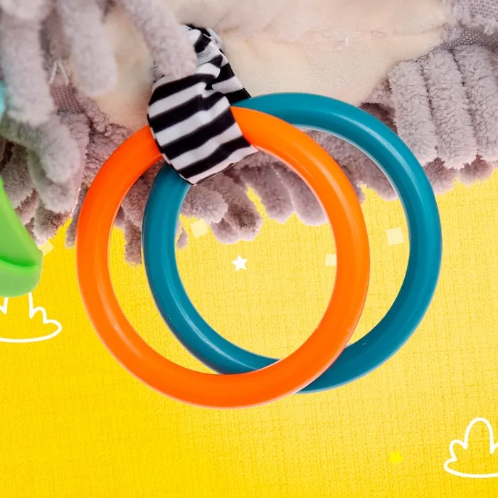 Элементы подвески помогают развивать координацию движений и мелкую моторику. Разнообразные текстуры интересны на ощупь, что поддерживает интерес ребёнка и способствует исследованию окружающего мира. Прорезыватель станет важным помощником во время роста первых зубов, помогая справиться с дискомфортом.