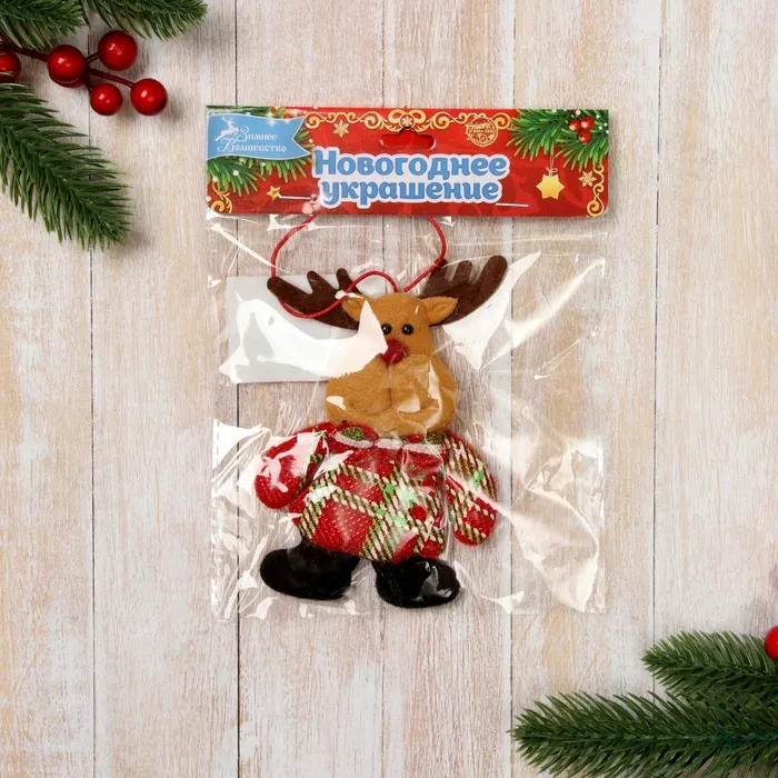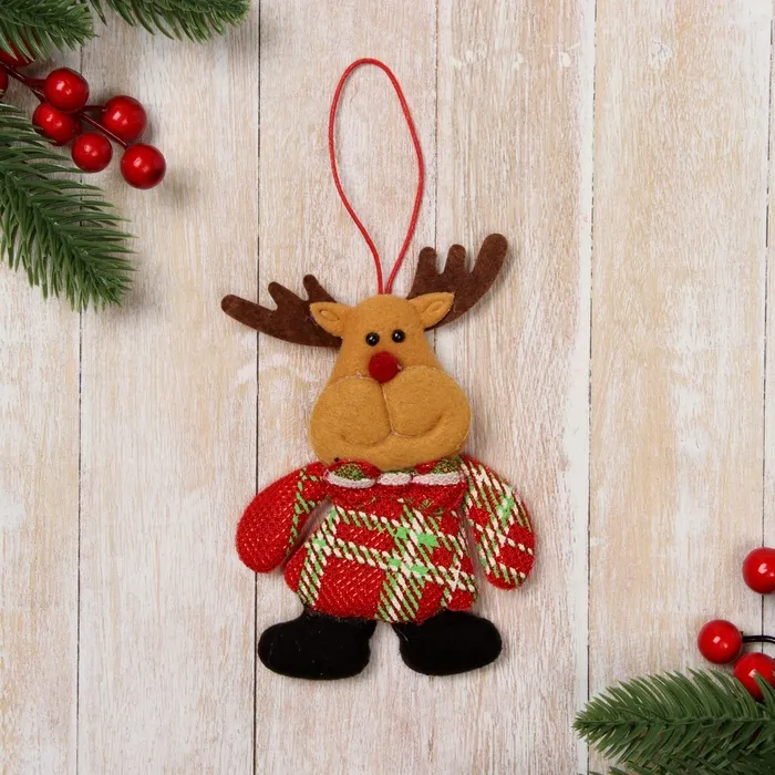 Подвеска мягкая на ёлку «Олень в клетчатом костюме» 7×9 см, красная