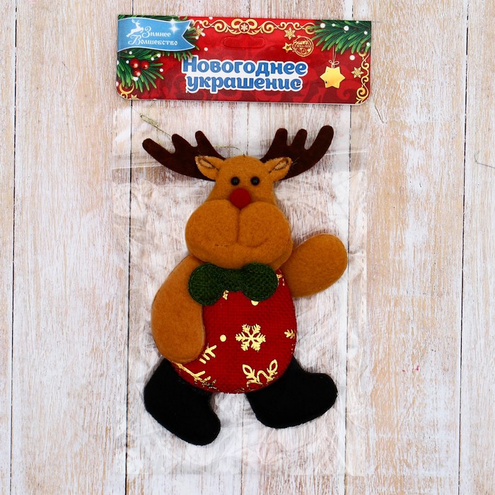 Подвеска мягкая на ёлку «Олень в костюмчике с узором» 7×12 см, красная — Характеристики