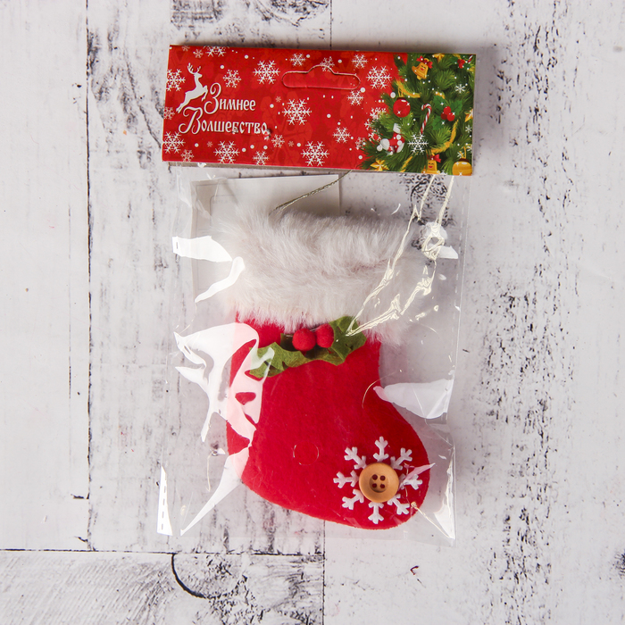 Подвеска мягкая на ёлку «Рождественский носок сюрприз» 6.5×10 см, красная — Характеристики