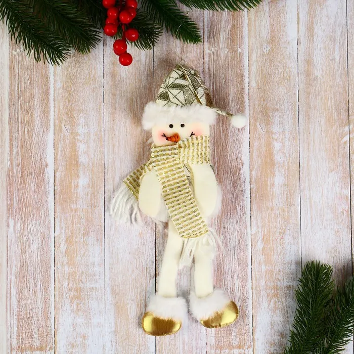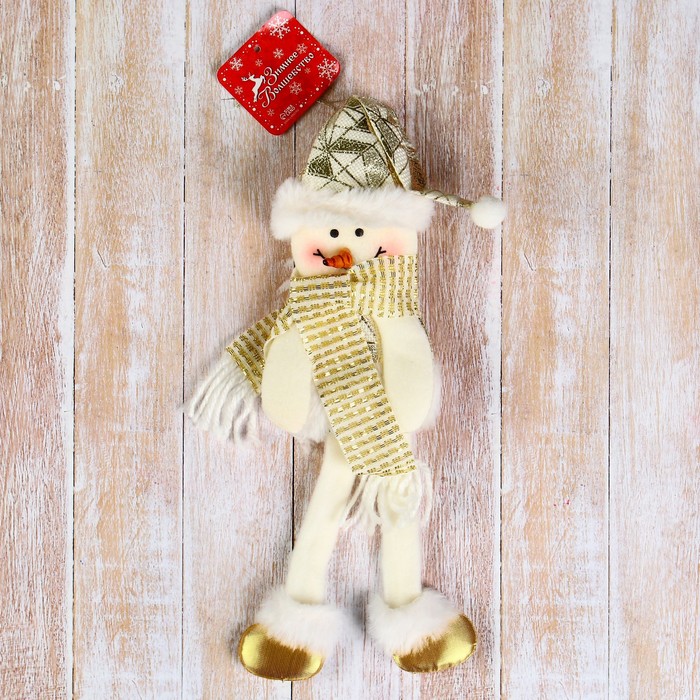 Подвеска мягкая на ёлку «Снеговик в костюмчике с узором геометрия, длинные ножки» 8×25 см, золотистая — Характеристики