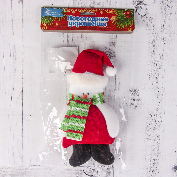 Подвеска мягкая на ёлку «Снеговик в полосатом шарфике», 9×20 см, красная — Характеристики