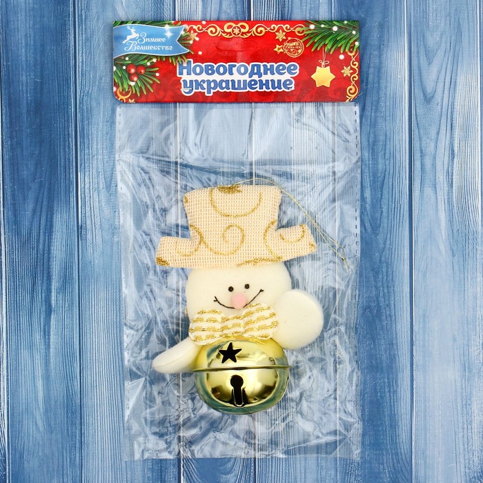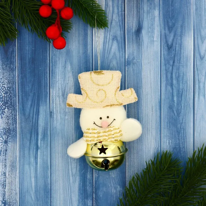 Подвеска мягкая на ёлку «Снеговик в шарике» 4×9 см, золотистая — Характеристики