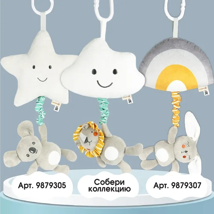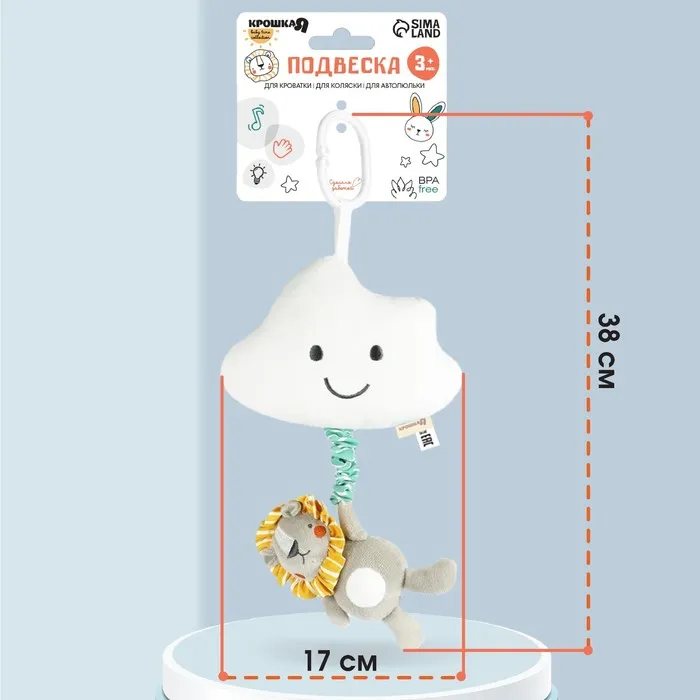 Удобный универсальный крепеж в виде кольца позволяет закрепить подвеску на коляску, кроватку или детское автокресло. Товар сертифицирован.