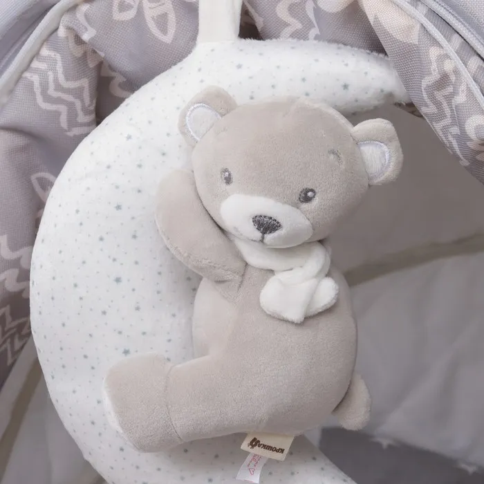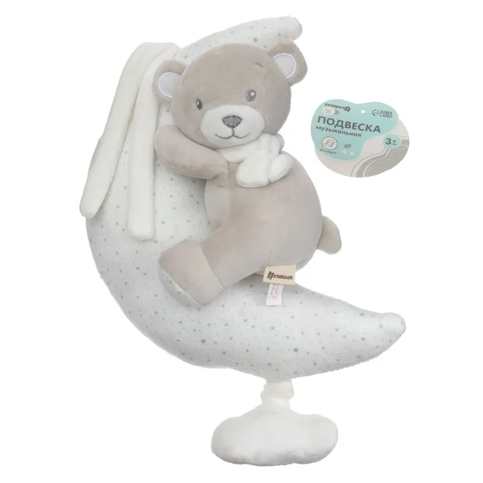 Подвеска музыкальная на кроватку/коляску Крошка Я «Серый мишка», заводная, с погремушкой, от 3 мес.