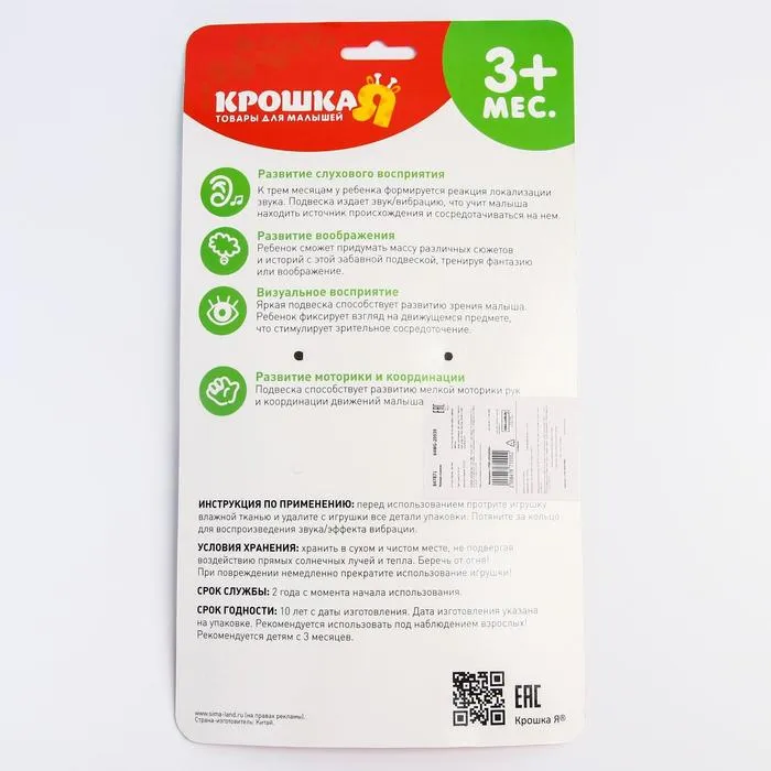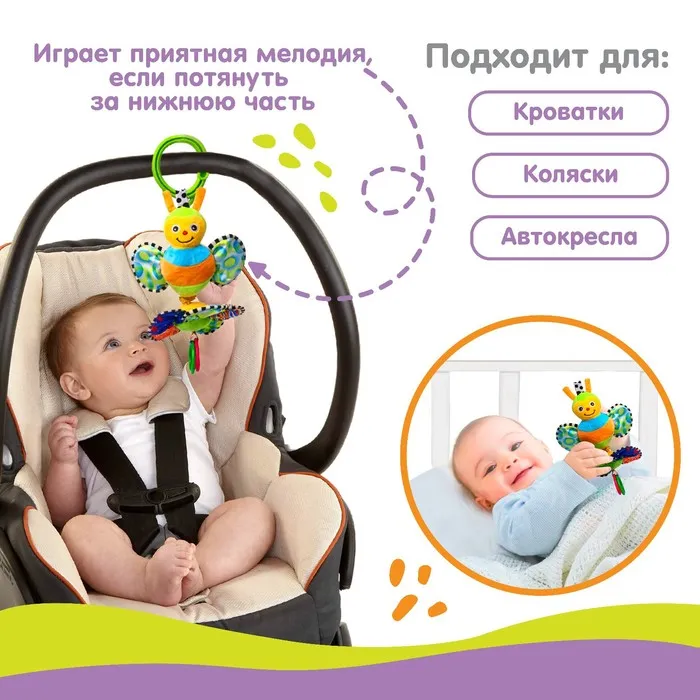 Подвеска музыкальная «Пчелка на цветке», заводная, на кроватку, коляску, Крошка Я — Характеристики