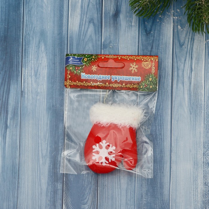 Подвеска на ёлку мягкая «Пушистая варежка со снежинкой», мягкая, 8×6 см, красный — Характеристики