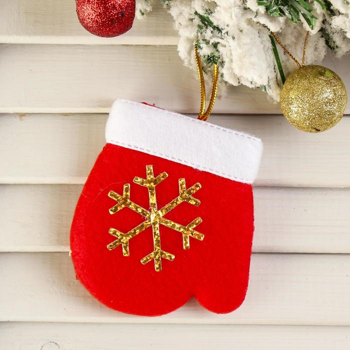 Подвеска на ёлку мягкая «Варежка с золотой снежинкой» 8×6 см, красный — Характеристики