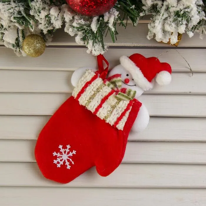 Подвеска на ёлку мягкая «Варежка - Снеговик», мягкая, 20×10 см, красный — Характеристики