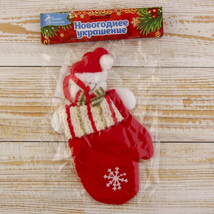 Подвеска на ёлку мягкая «Варежка - Снеговик», мягкая, 20×10 см, красный
