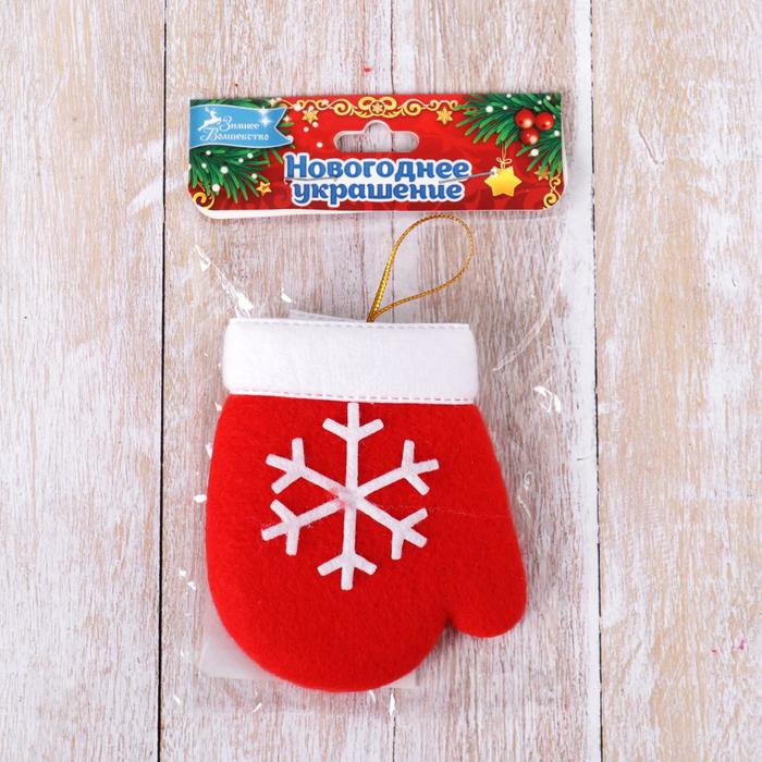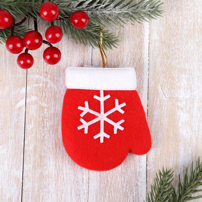 Подвеска на ёлку мягкая «Варежка со снежинкой» 8×6 см, красный — Характеристики