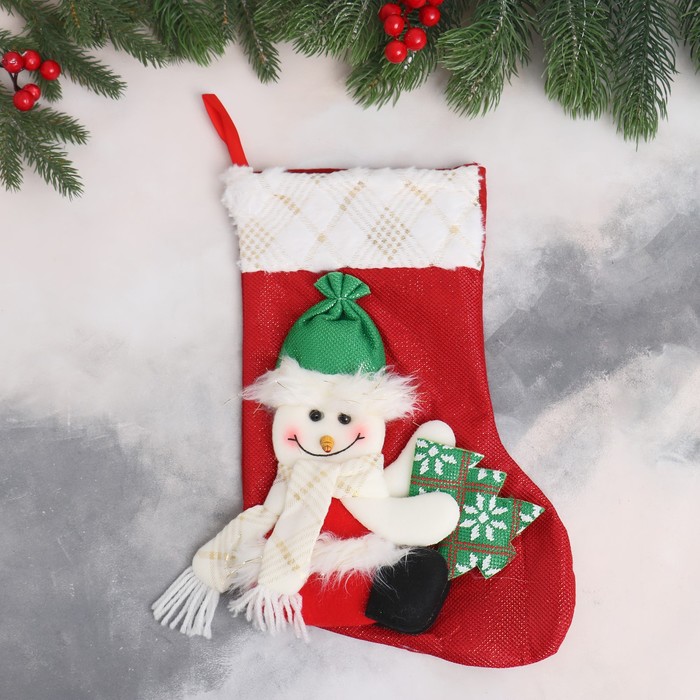 Подвеска на ёлку «Снеговик с ёлочкой», мягкая, 20×33 см, красный — Характеристики