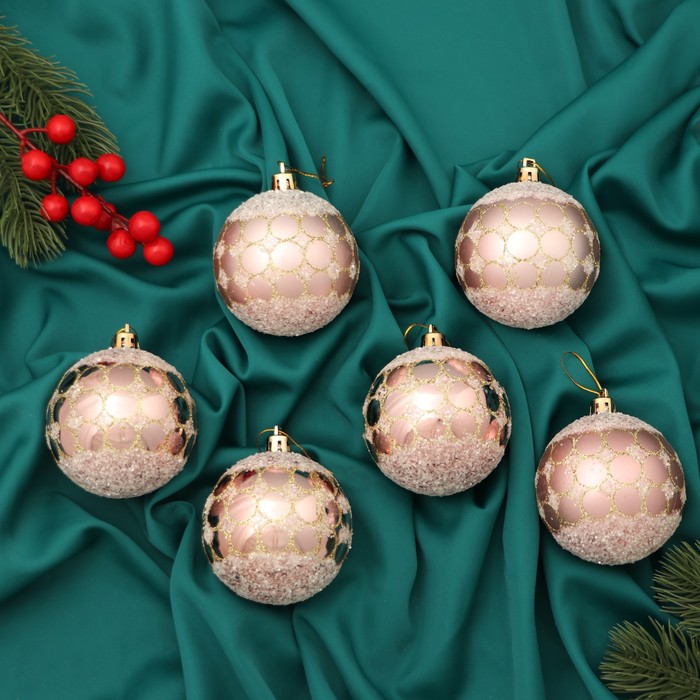 Ёлочные игрушки «Сюрприз», шары новогодние, d=7 см, набор 6 шт., розовый