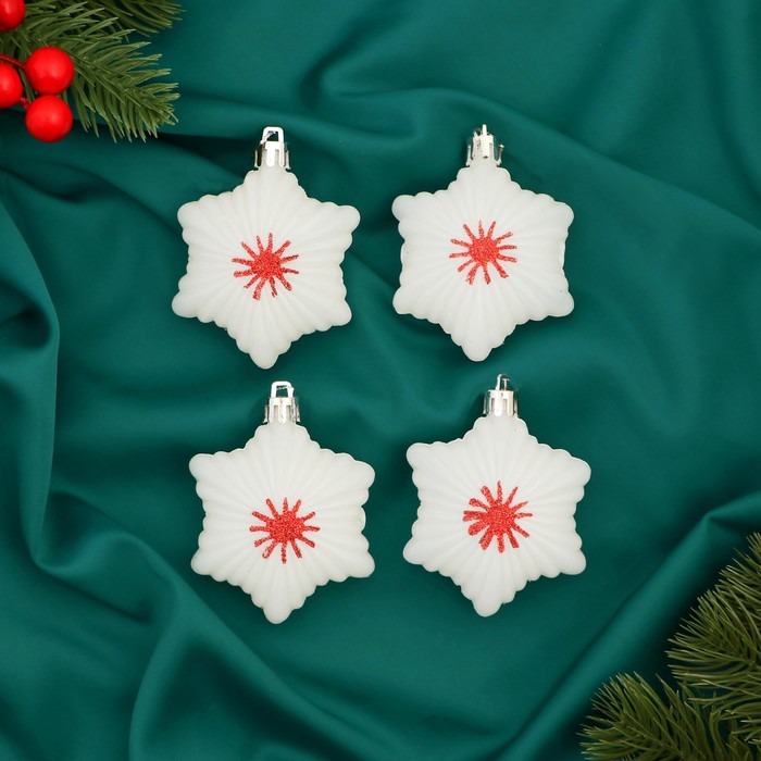 Ёлочные игрушки 4 шт. «Зимнее волшебство. Звезда праздничная» пластик, 5х7 см, белый