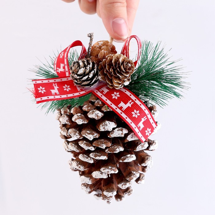 Шишка декоративная «Новогоднее настроение» — подвесной аксессуар, который создаст атмосферу уюта в доме. Ёлочная игрушка станет прекрасным дополнением к рождественским украшениям интерьера. Нарядив ёлку всей семьёй, вы оставите на душе только самые теплые воспоминания, которые будут согревать вас холодной зимой. Создайте праздничное волшебство у себя дома!