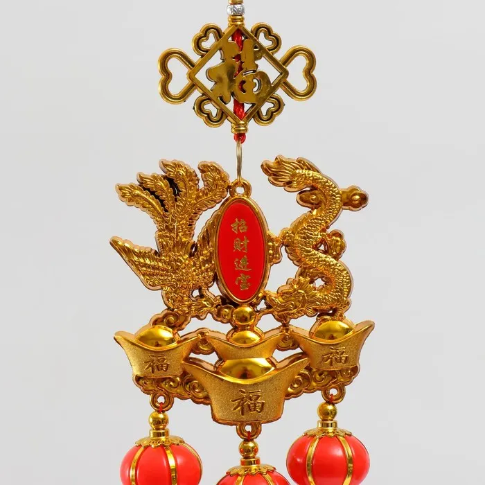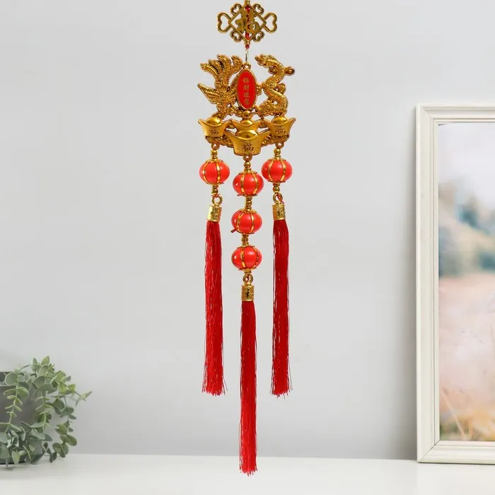 Подвеска-оберег «Дракон и феникс на слитках золота», 13×66 см — Характеристики