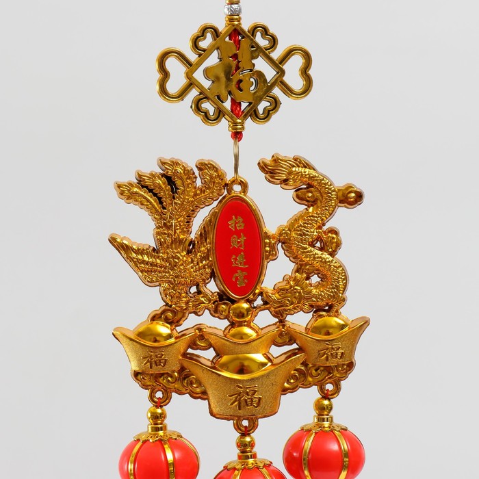 Подвеска-оберег «Дракон и феникс на слитках золота», 13×66 см