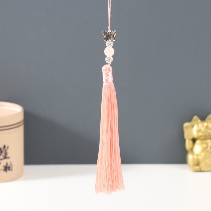 Подвеска текстиль, пластик "Узел счастья и бесконечности" персиковая 0,7х1х9,5 см