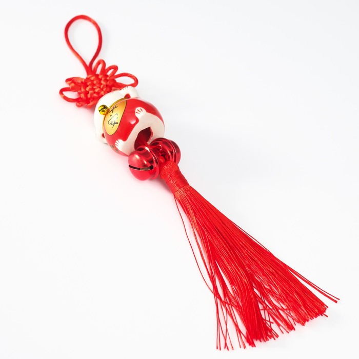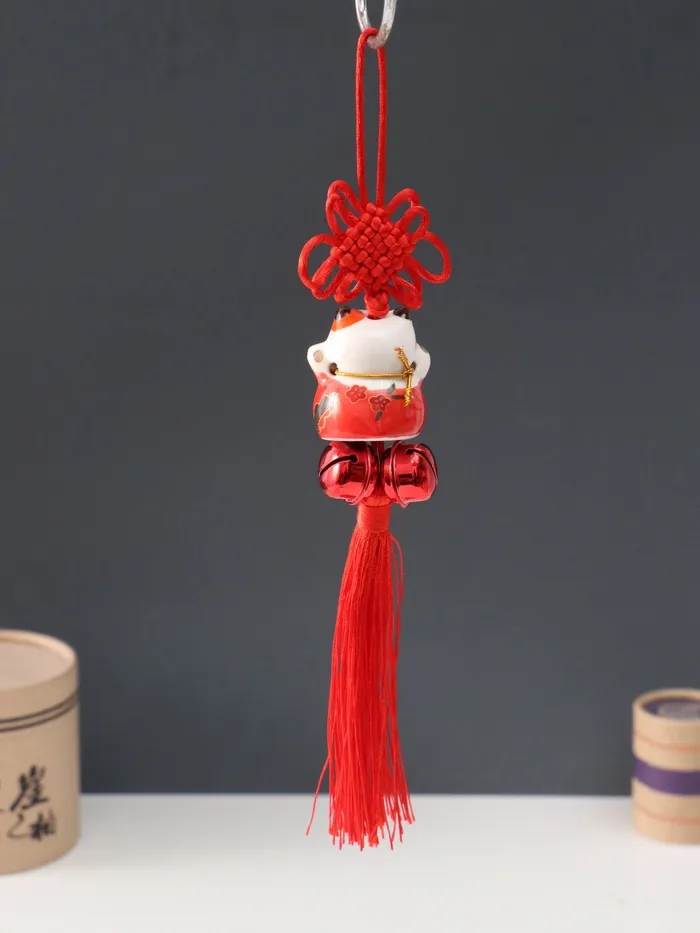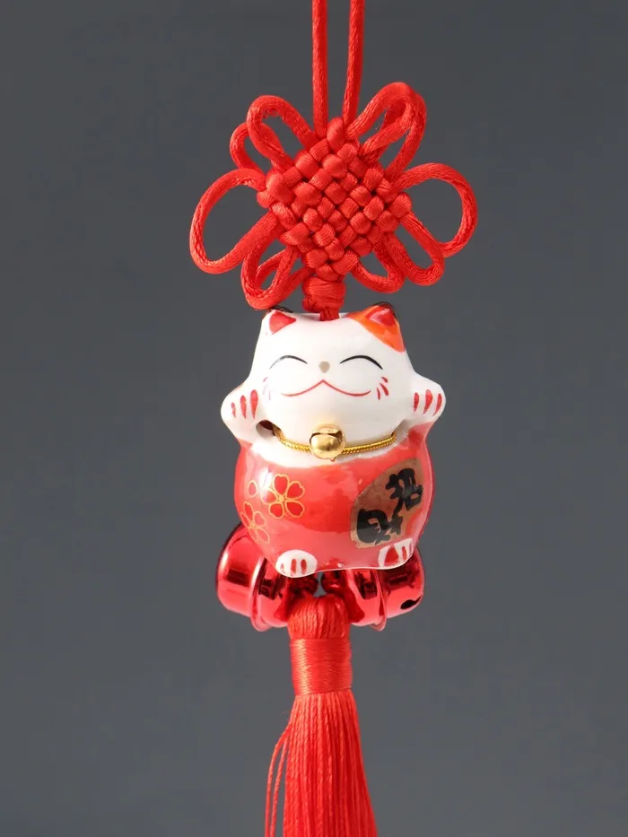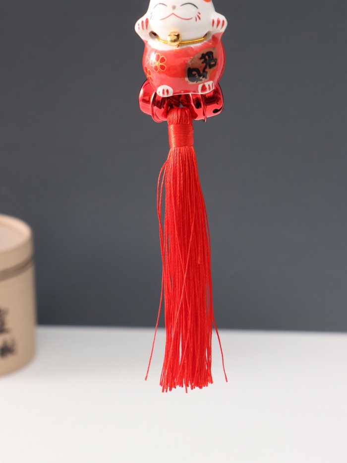 Этот яркий оберег сочетает в себе древние японские традиции и современное декоративное решение. Красная керамическая фигурка с золотистыми акцентами и мелодичными бубенчиками создана для защиты вашего пространства и привлечения положительной энергии.