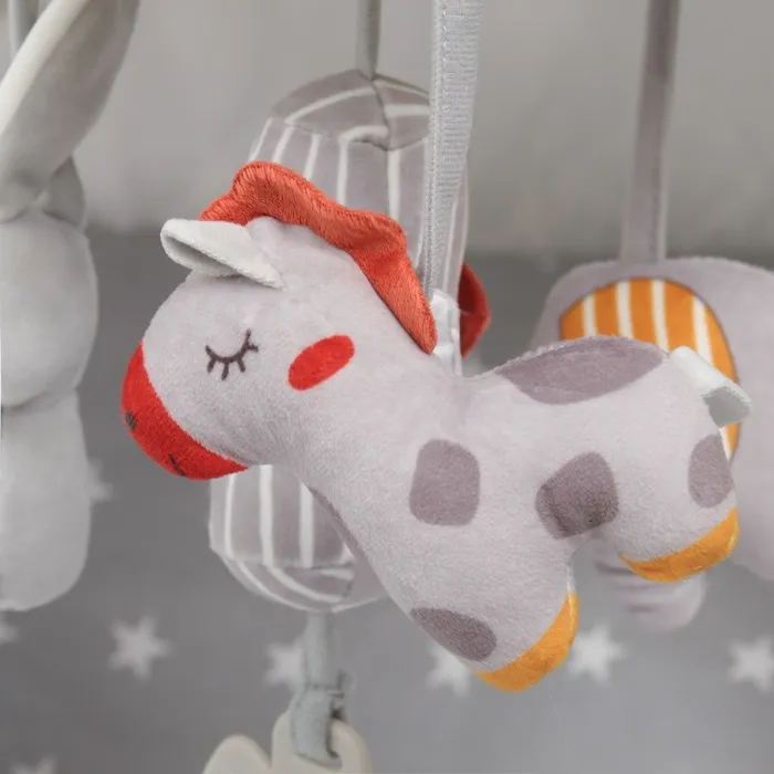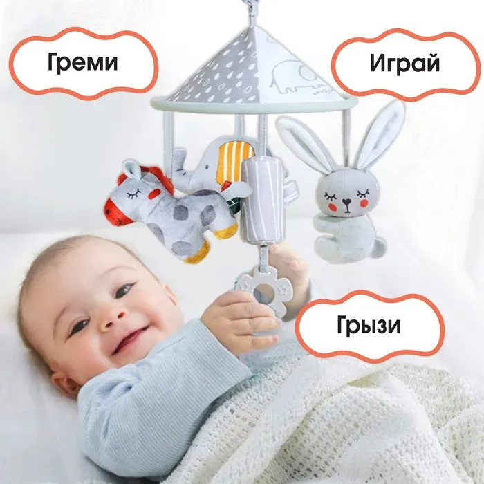 Детская развивающая подвесная игрушка с прорезывателем (грызунком) зубов для мальчиков и девочек 0+ Карусель Бонни.