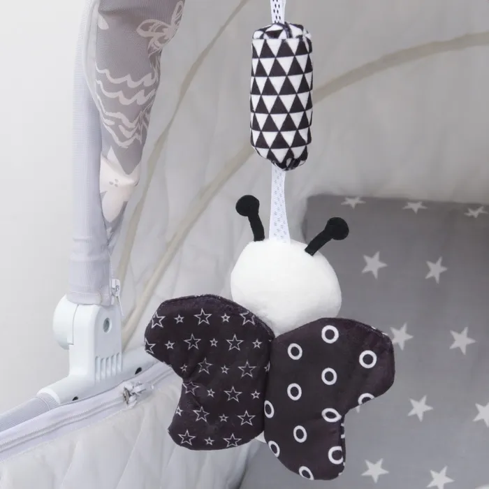 Удобный универсальный крепеж в разъемного кольца позволяет закрепить подвеску на коляску, кроватку или детское автокресло.
