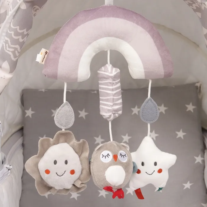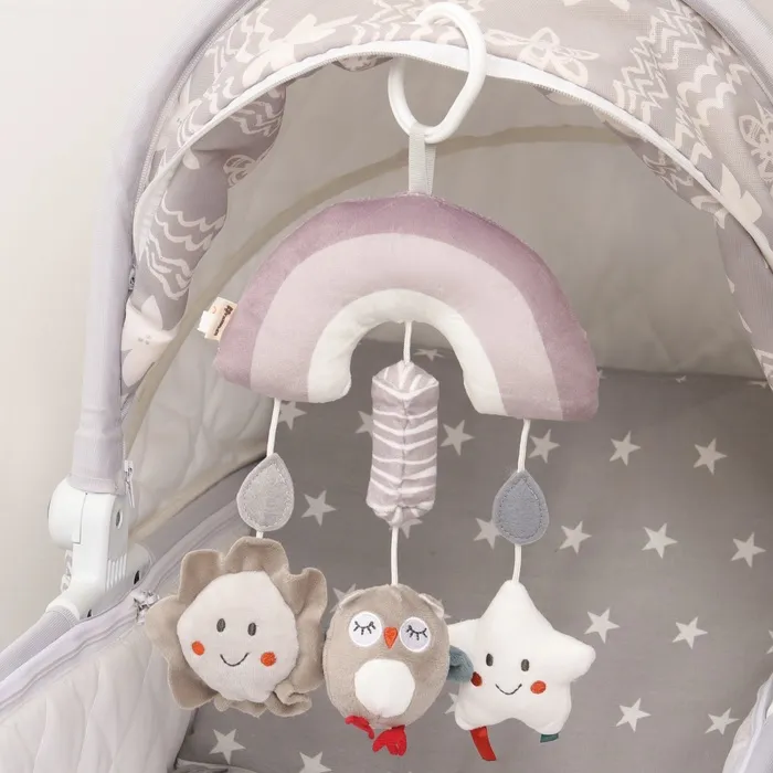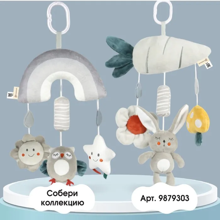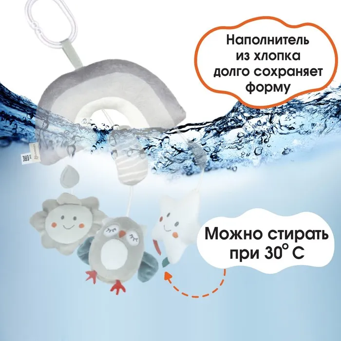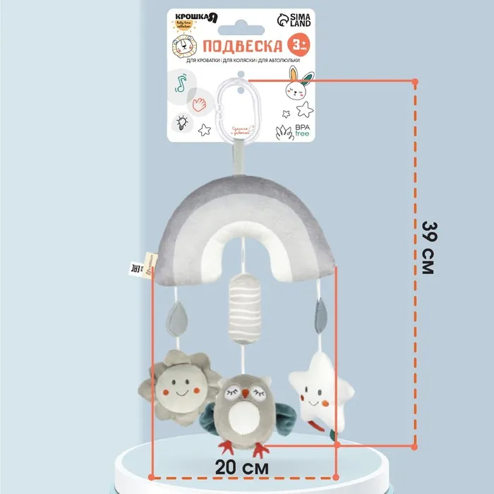 Удобный универсальный крепеж в виде кольца позволяет закрепить подвеску на коляску, кроватку или детское автокресло. Товар сертифицирован.