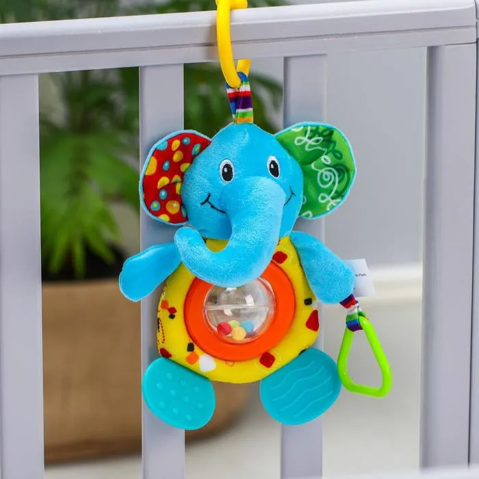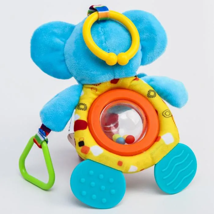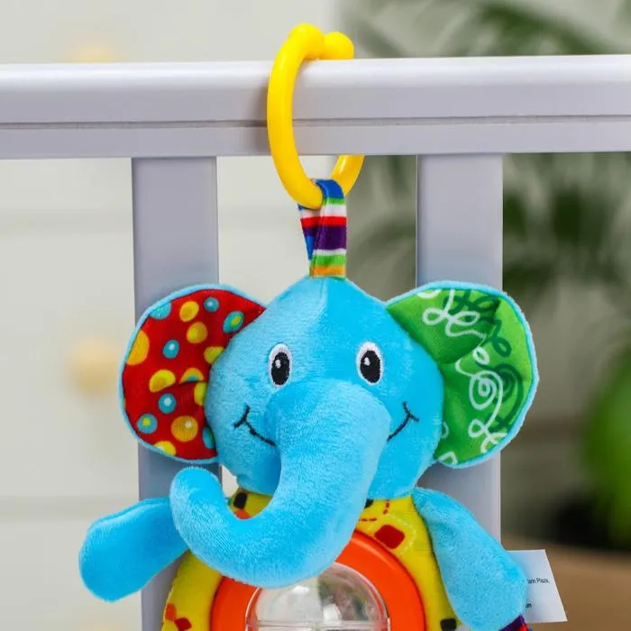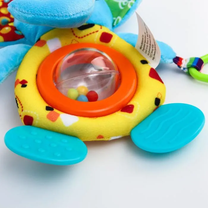 Подвесная игрушка поможет малышу сформировать представление об окружающем мире. Ребёнок познакомится с разными цветами и фигурами, будет с интересом рассматривать привлекательный предмет, тянуться к нему и изучать на ощупь. Такие занятия развивают зрительное восприятие, концентрацию внимания, двигательные навыки и тактильные ощущения. Внутри присутствует погремушка и пищалка, а лапки игрушки весело шуршат.