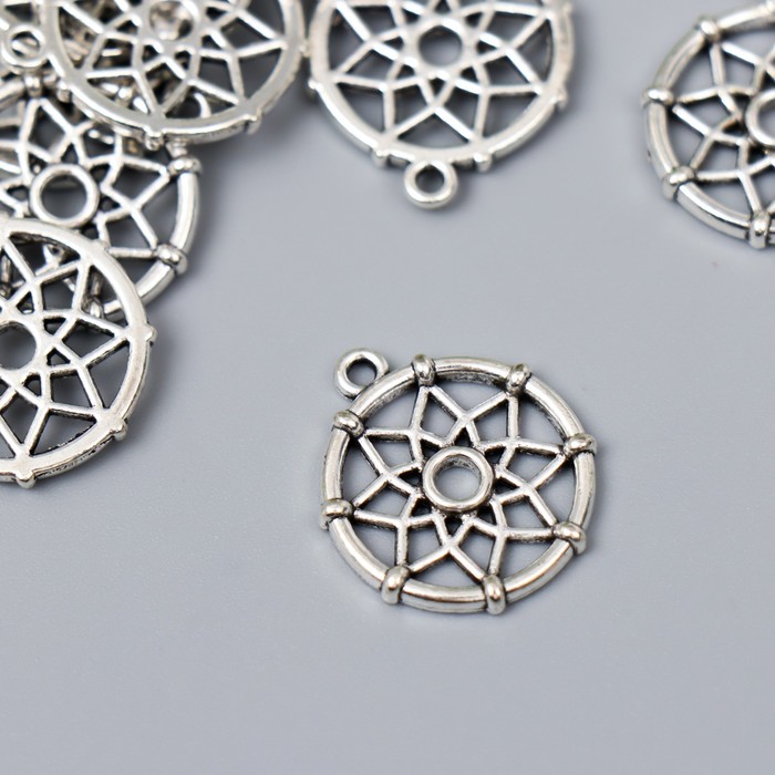 Металлический элемент, декоративная подвеска «Арт Узор. Ловец снов: цветок», серебро, 2.2×1.9 см