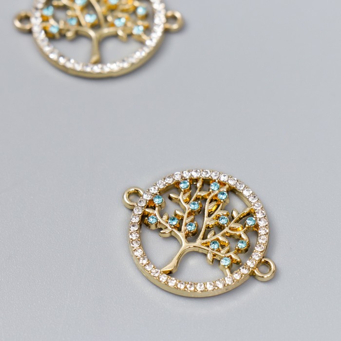 Коннектор для творчества металл 2 ушка «Дерево в круге», стразы, 2.4×1.9 см
