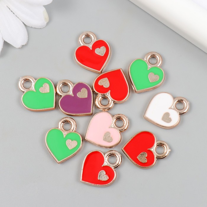 Пластиковый элемент, декоративная подвеска под металл «Арт Узор. Сердце в сердце», набор 10 шт., 0.2×1.5×1.9 см, МИКС