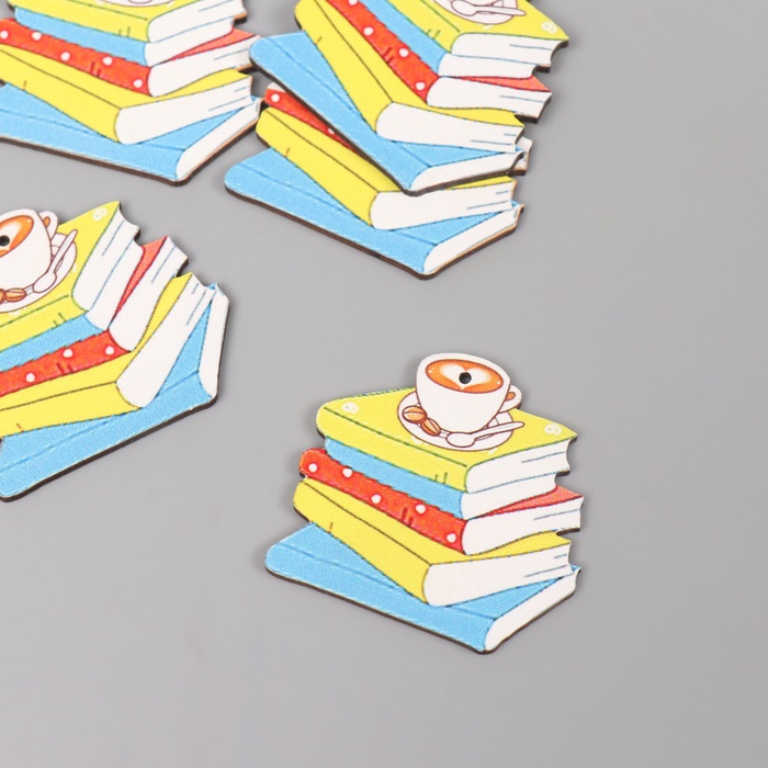 Декор для творчества дерево «Стопка книг и чашка кофе», 4×4.3×0.3 см