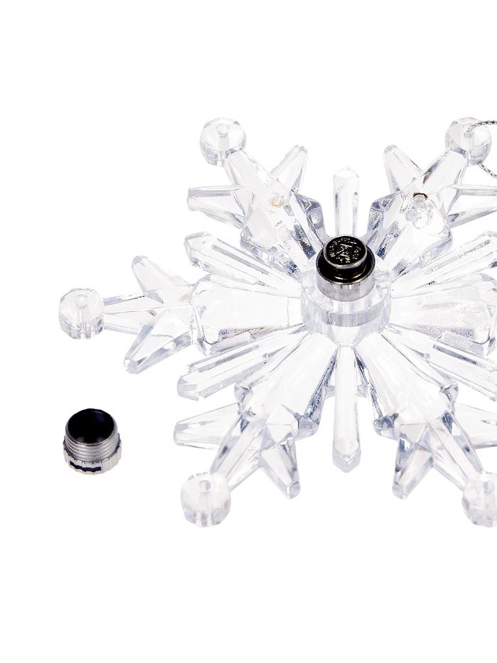 Компактная подвеска высотой 11 см — ледяная снежинка из прозрачного пластика, которая оживляет пространство плавным светодиодным свечением. Смена синего и красного цвета создаёт эффект праздничной игры оттенков, делая интерьер более ярким и атмосферным.