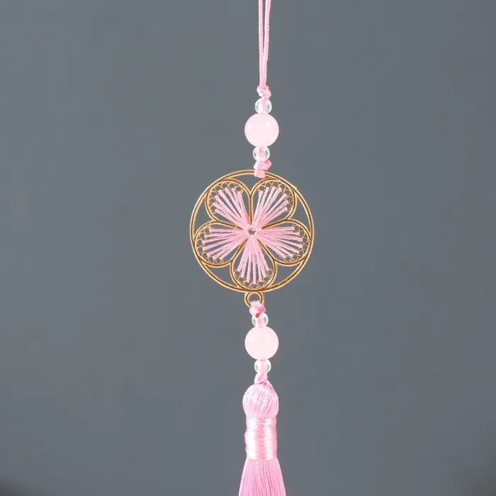 Подвеска текстиль, металл "Цветок в оправе" розовая 1х3х19,5 см — Характеристики