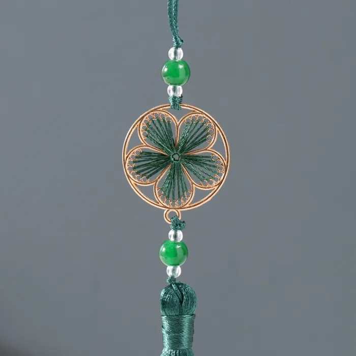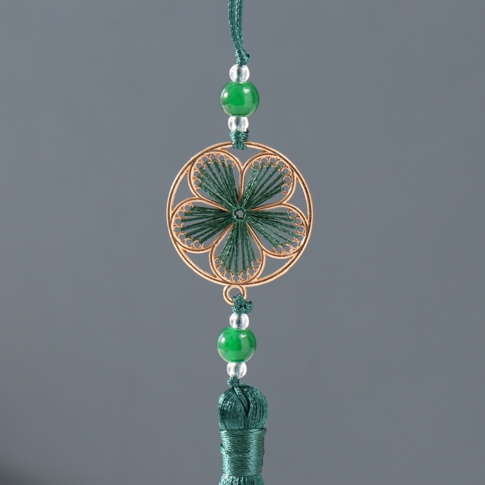Подвеска текстиль, металл "Цветок в оправе" тёмно-зелёная 1х3х19,5 см — Характеристики