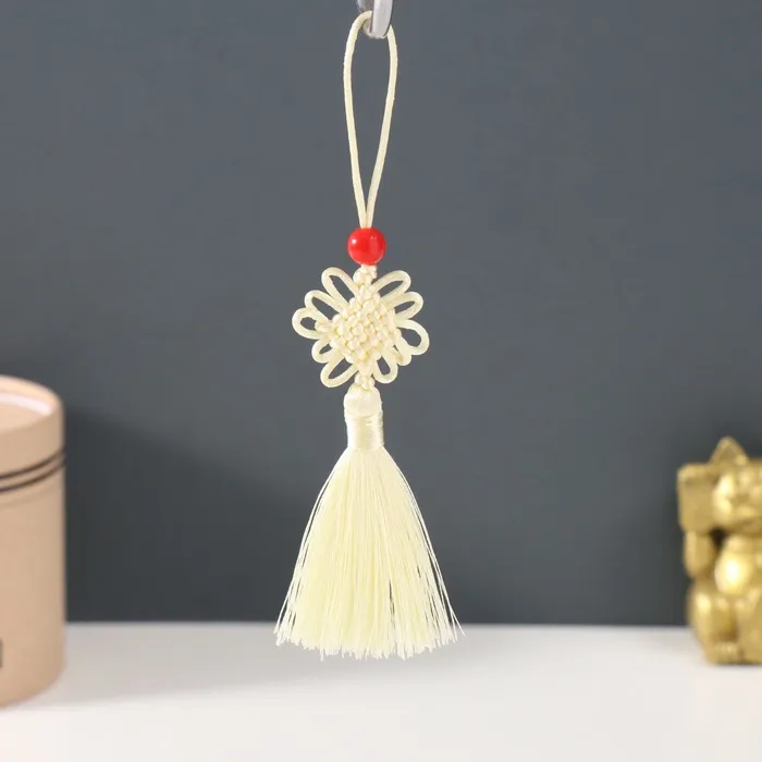 Подвеска текстиль, пластик "Узел счастья и бесконечности" бело-жёлтая 8,5 см — Характеристики