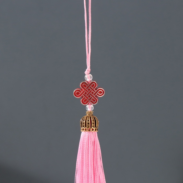 Подвеска текстиль, пластик "Узел счастья и бесконечности" нежно-розовая 0,7х1х9,5 см — Характеристики