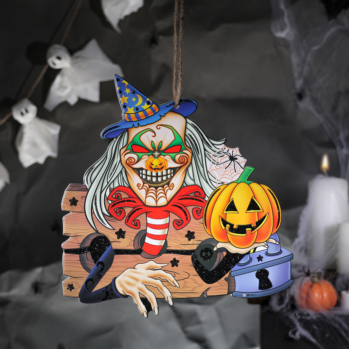 Подвеска «Ужасы в ночь на хэллоуин» — это жутковато-веселый декор для самых страшных вечеринок. Создайте неповторимую атмосферу ужаса в своем доме или офисе с этим ярким аксессуаром.